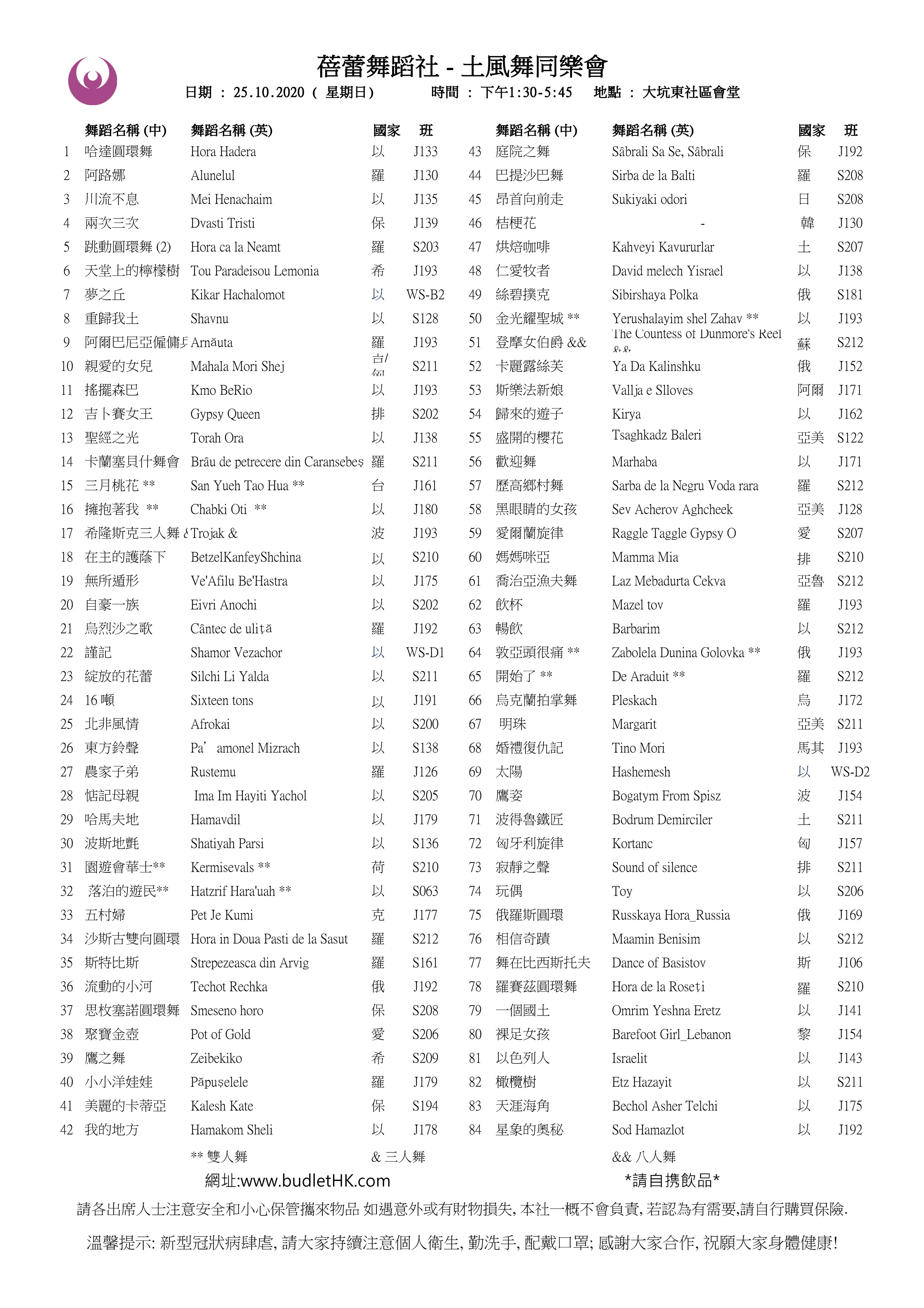 25/10/2020 大坑東社區會堂 |
